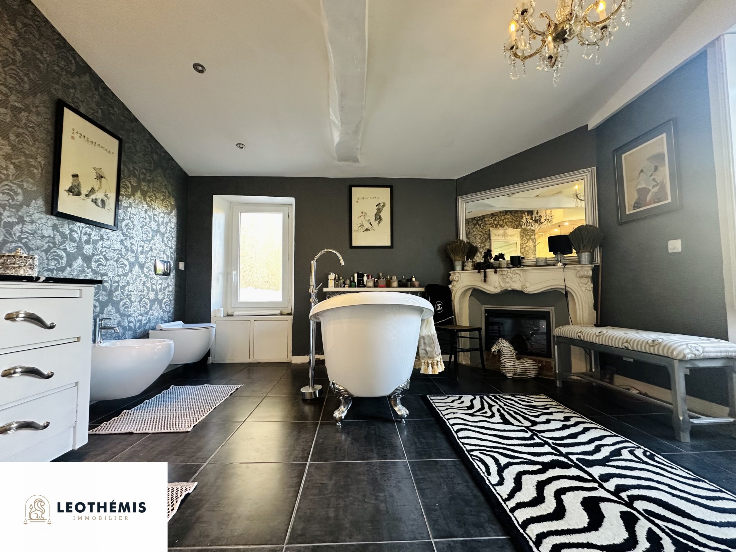 Côté nuit, la demeure propose huit chambres dont une en rez-de-chaussée, une salle de bains avec douche et deux salles d’eau, alliant confort et fonctionnalité.