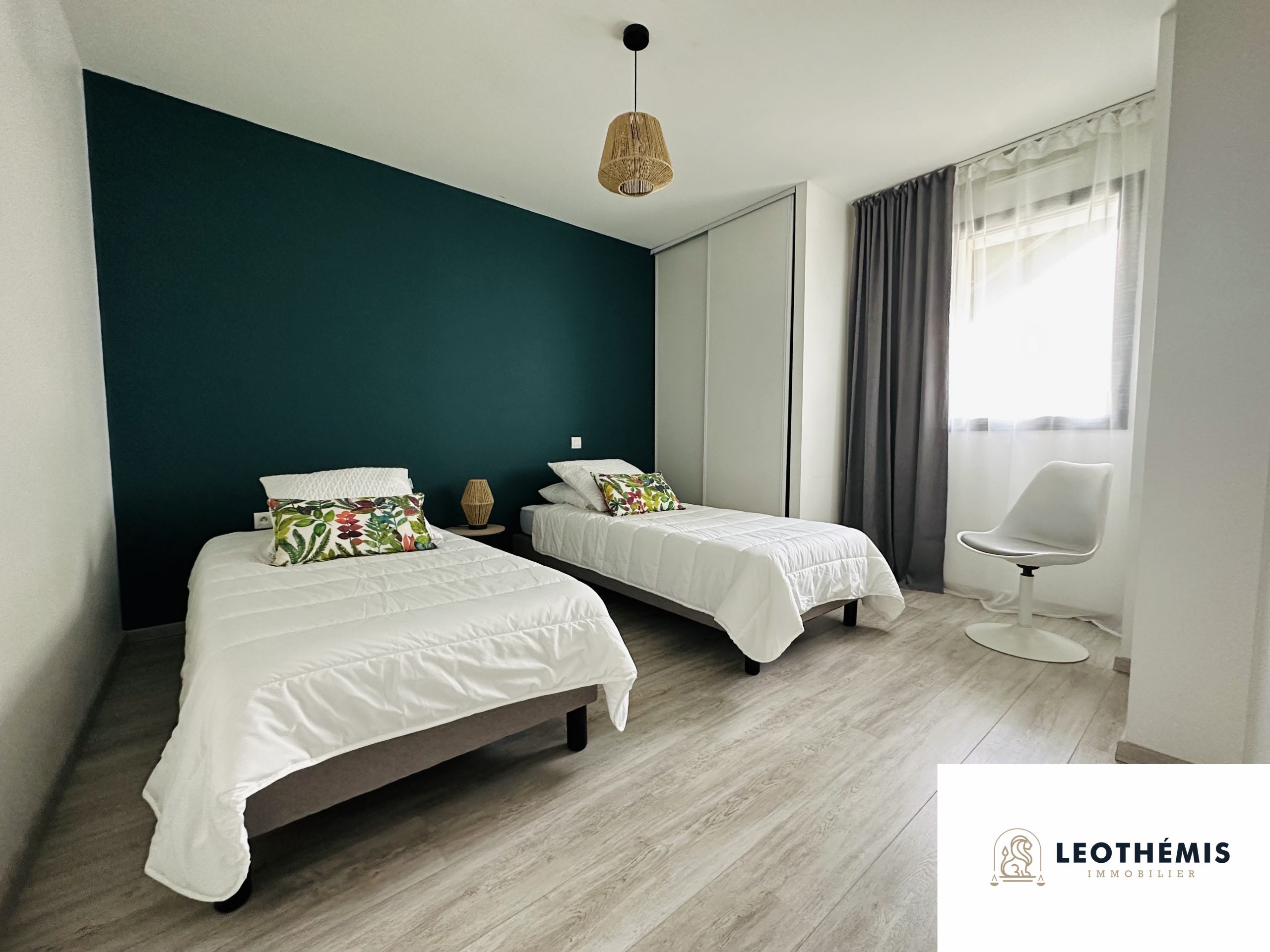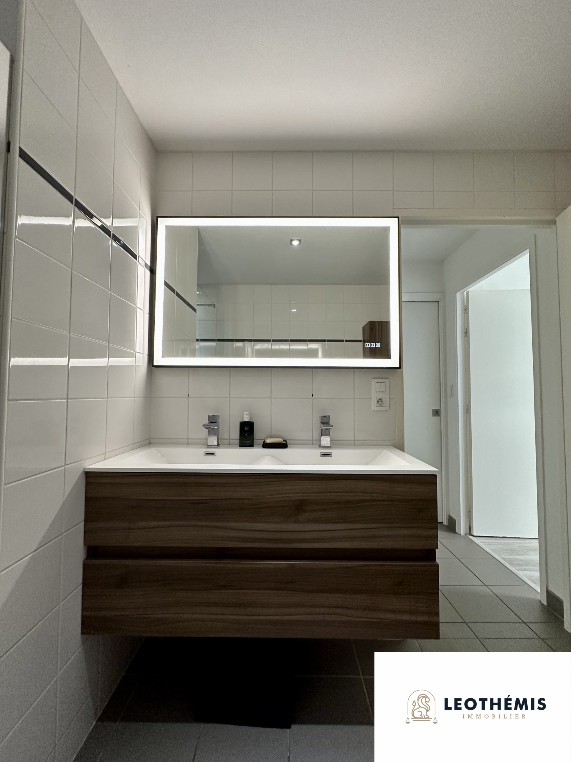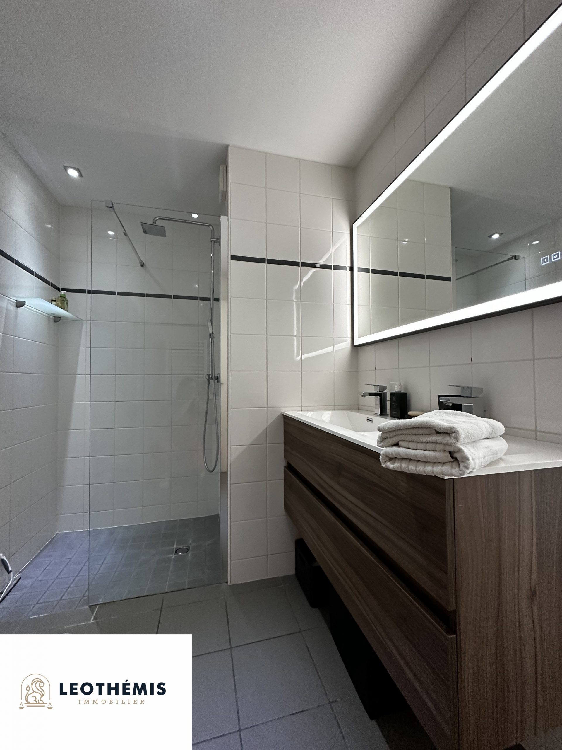 L’espace nuit dispose de deux belles chambres avec placards, d’une salle d’eau avec douche à l’italienne, miroir lumineux anti-buée et double vasque suspendue, sèche serviettes et espace de rangement.