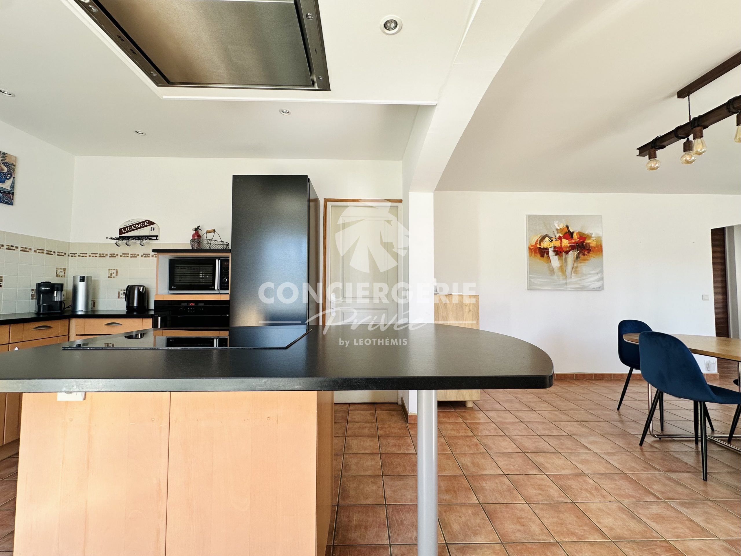 ▪️ une cuisine ouverte sur le séjour entièrement équipée : machine à café Nespresso, bouilloire, grille-pain, four, micro-ondes, plaques de cuisson, hotte, réfrigérateur/congélateur, lave-vaisselle