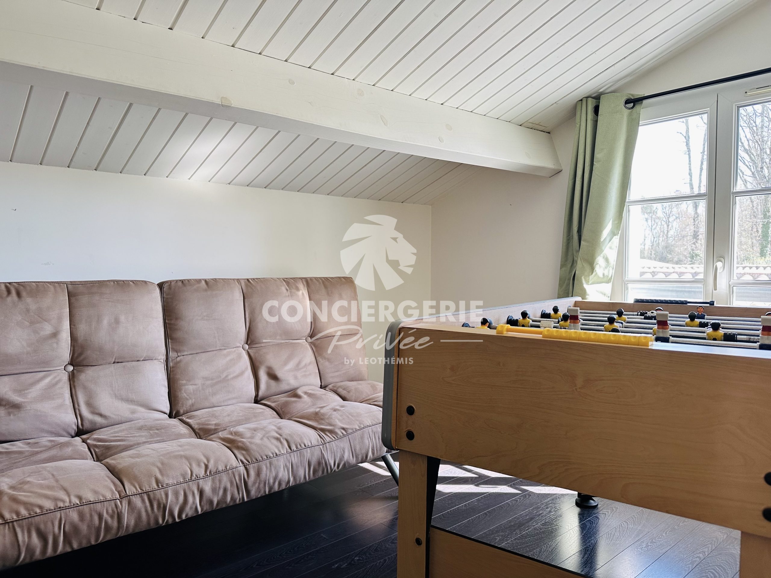 ▪️ Une pièce située à l’étage est dédiée à un espace jeux avec un baby-foot, des jeux de société et des jeux pour jeunes enfants.