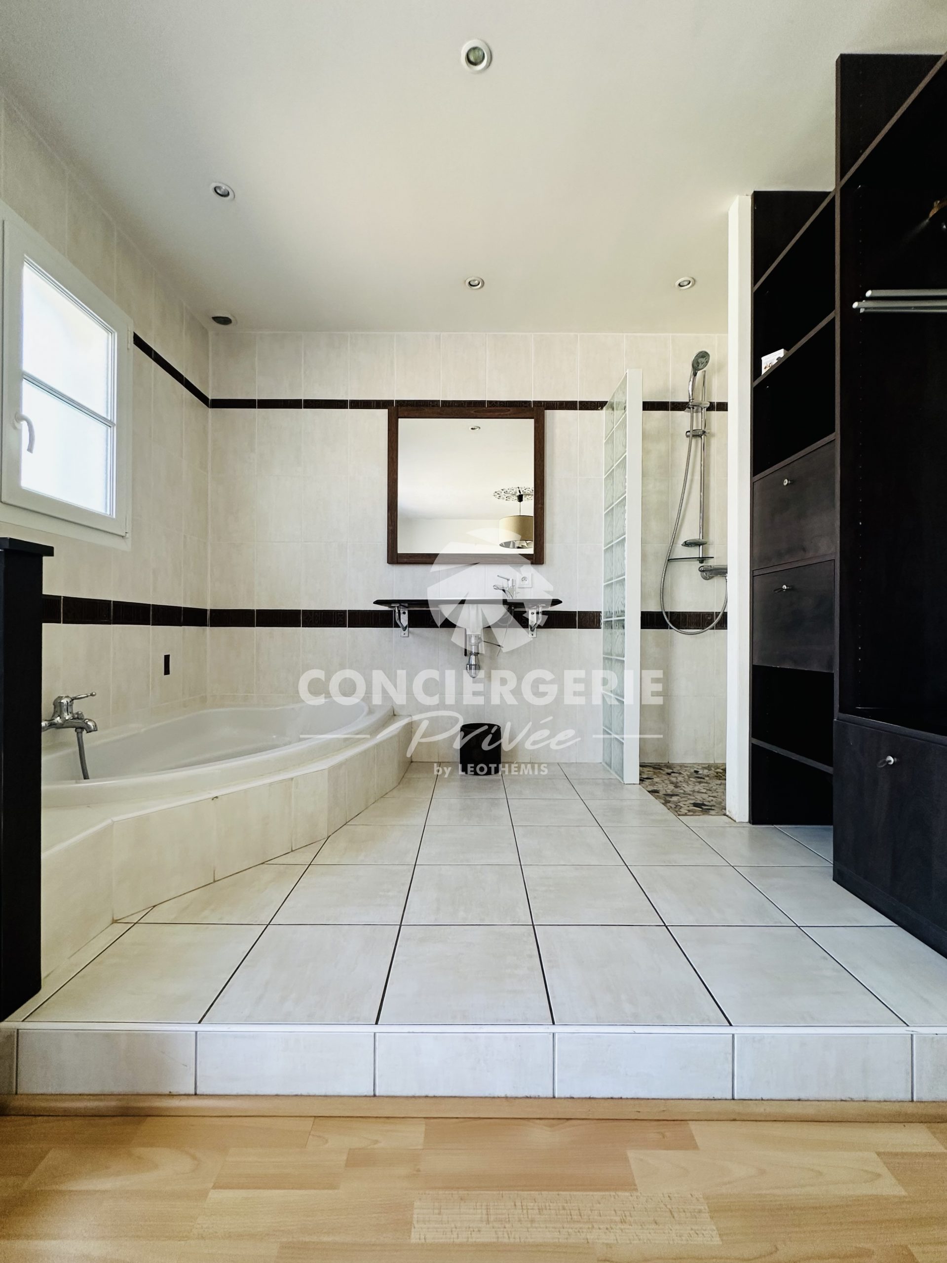 Implantée au cœur d’un parc paysager de 1 700 m², la propriété offre un cadre rare, intime et préservé. Les extérieurs deviennent de véritables lieux de vie : une terrasse exposée plein sud, propice aux déjeuners ensoleillés et aux longues soirées d’été autour du barbecue, ainsi qu’un espace piscine confidentiel, véritable invitation farniente, entre ombre et lumière.