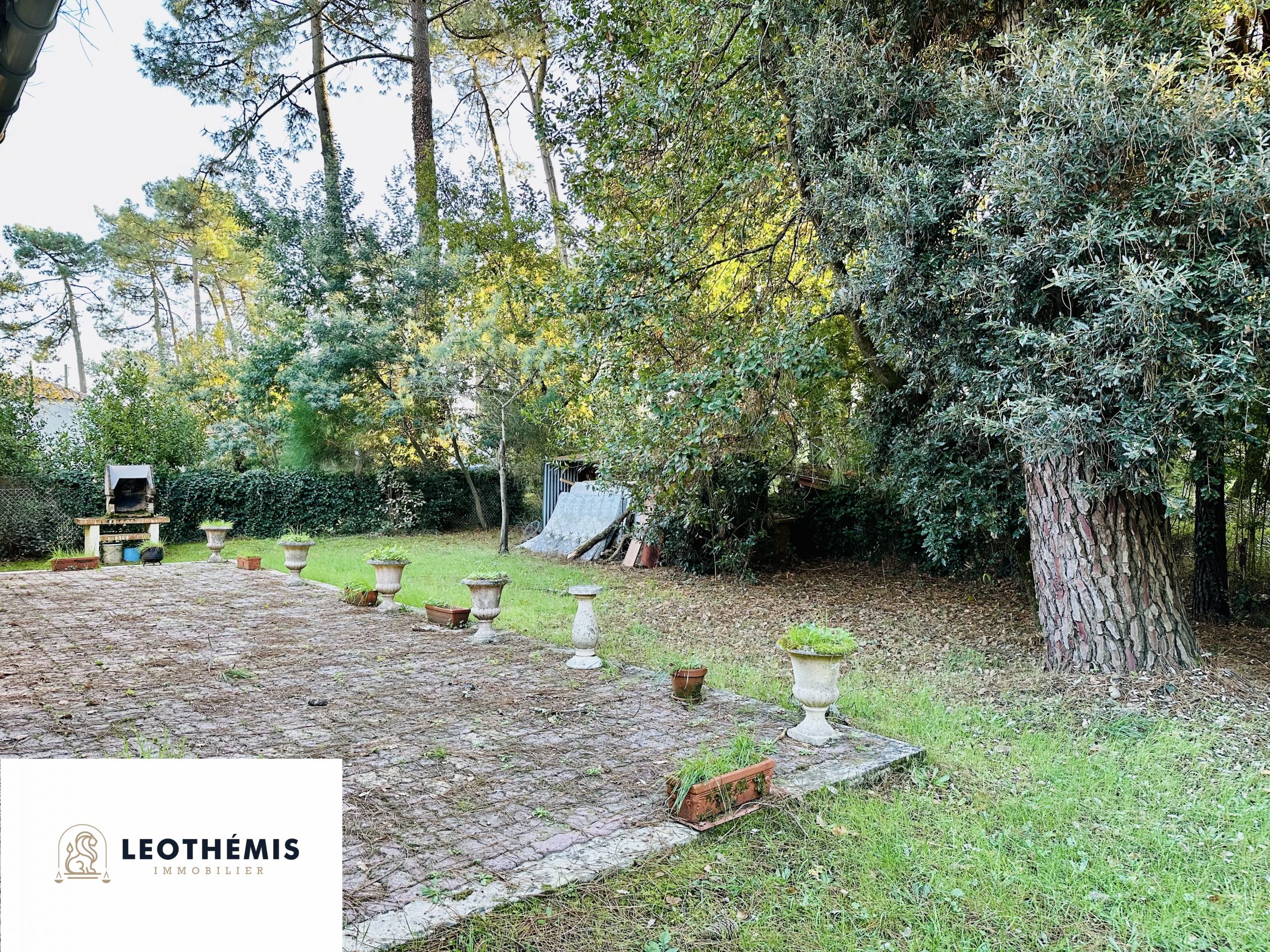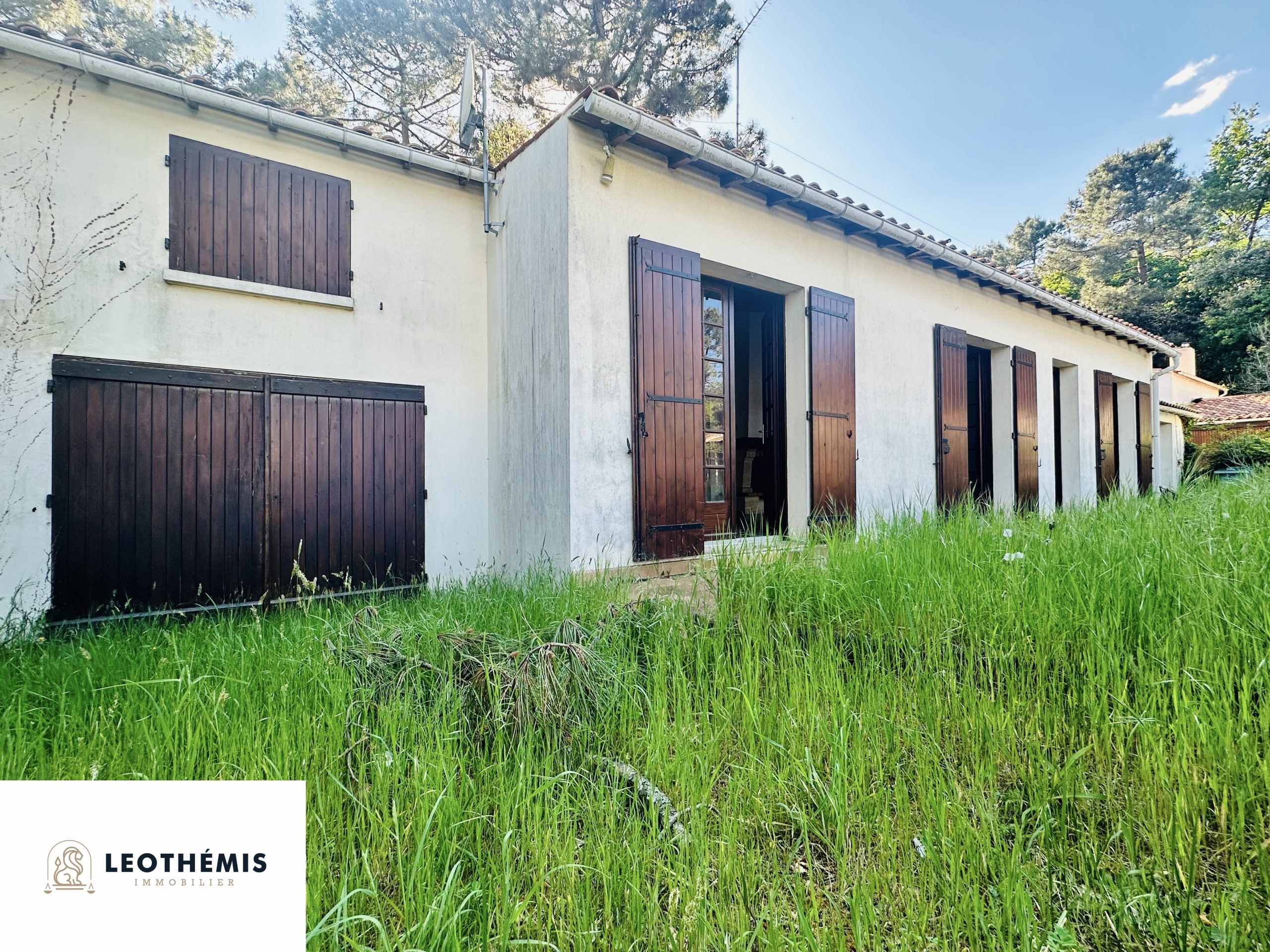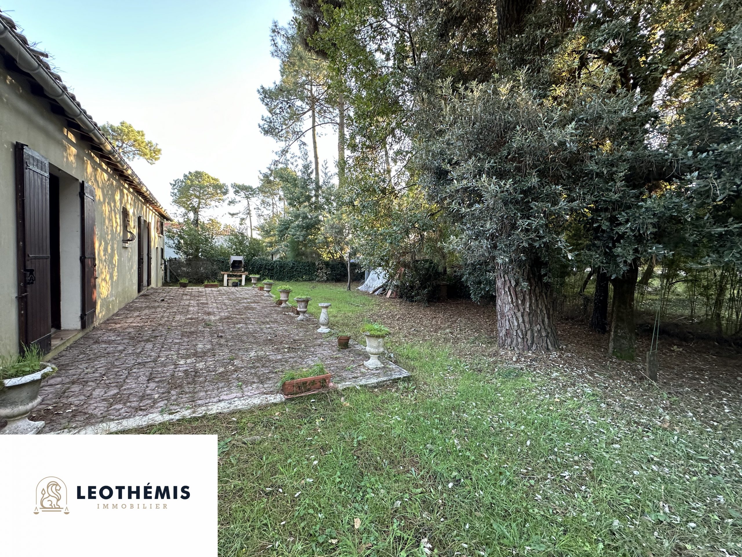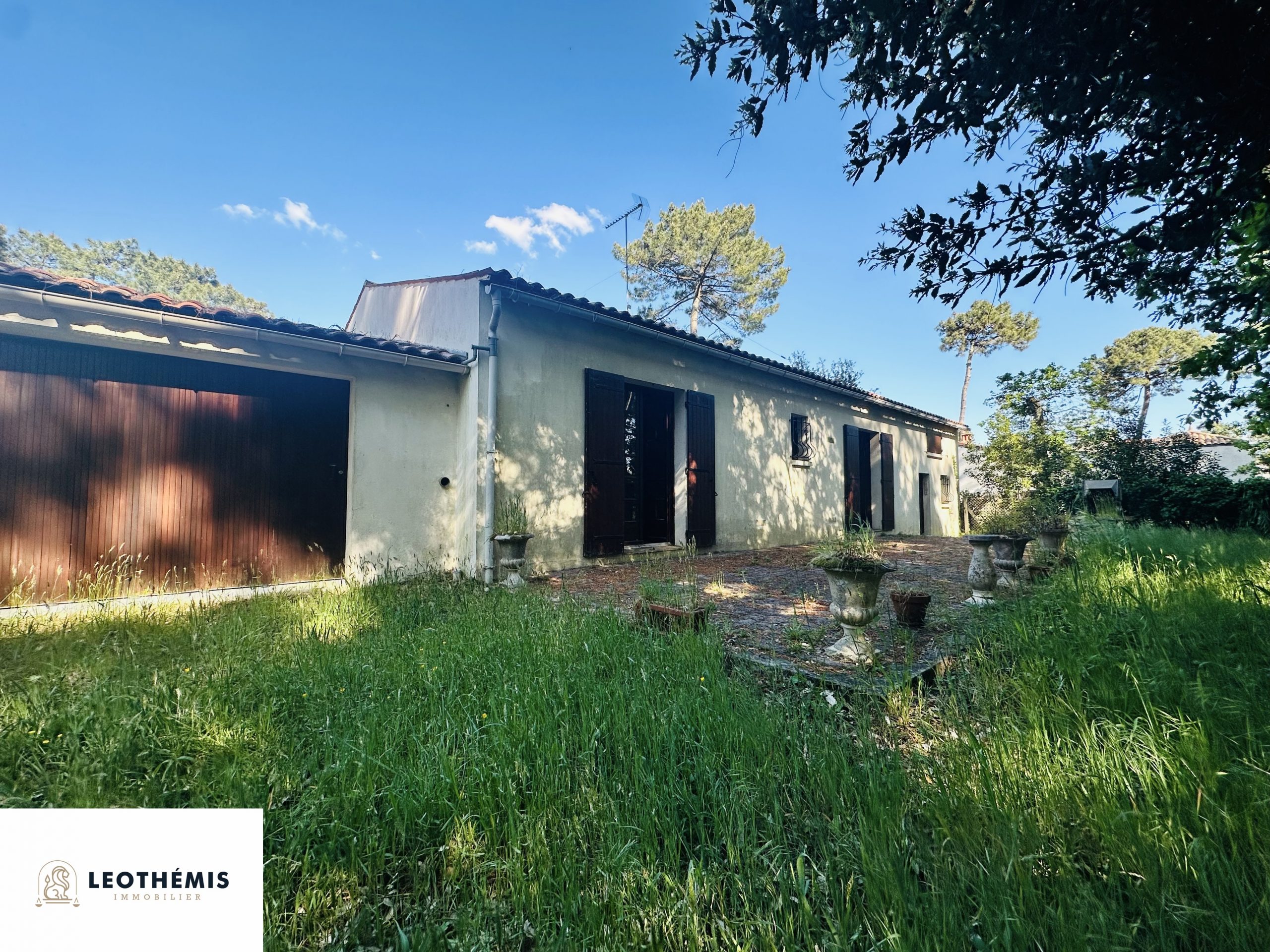 À l’extérieur, découvrez un agréable espace jardin arboré de pins donnant sur l’avant et l’arrière de la propriété. Un grand garage complète le tout.
